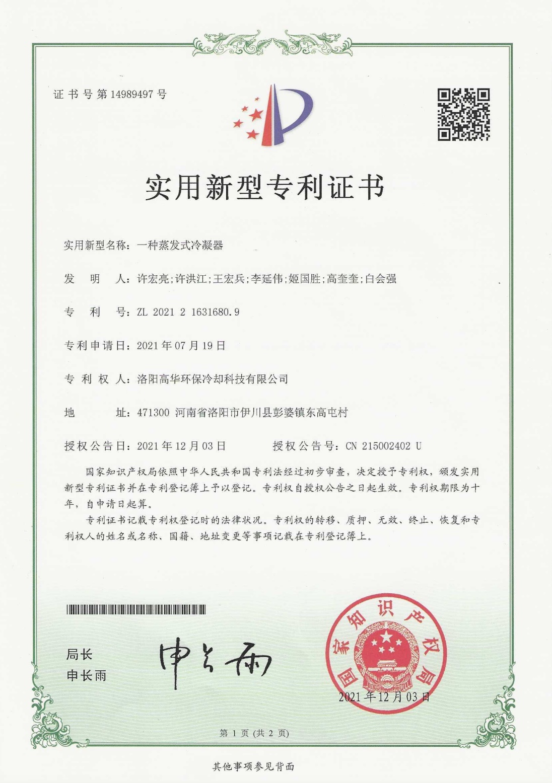 版权所有 闭式冷却塔|蒸发式冷凝器|复合节水型闭式冷却塔|洛阳高华环保冷却科技有限公司 备案号:豫ICP备18045690号-1 豫公网安备 41032902000249号